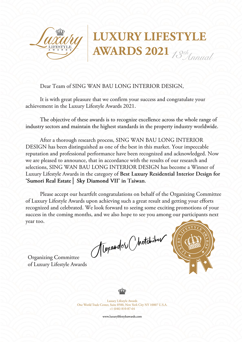 美國Luxury Lifestyle Award