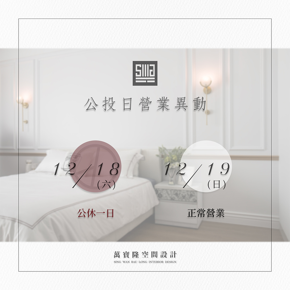 ◎ 12/18(六) 公休一日