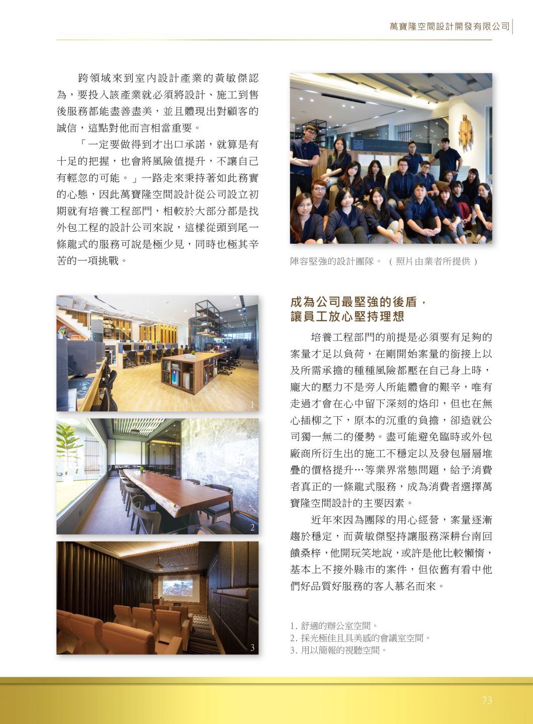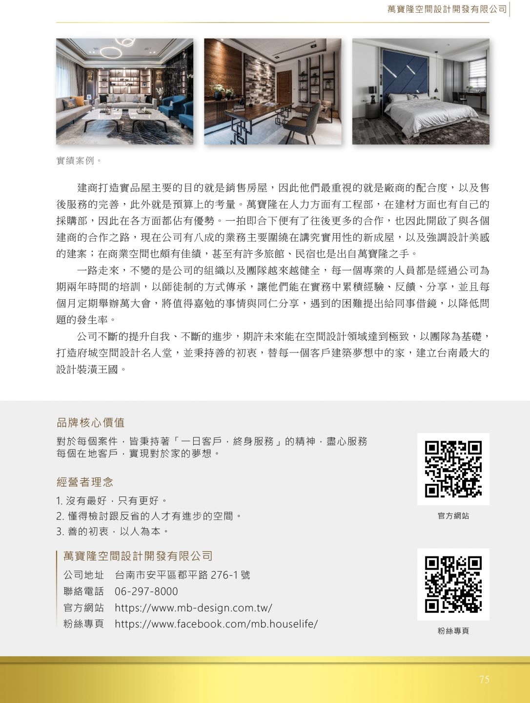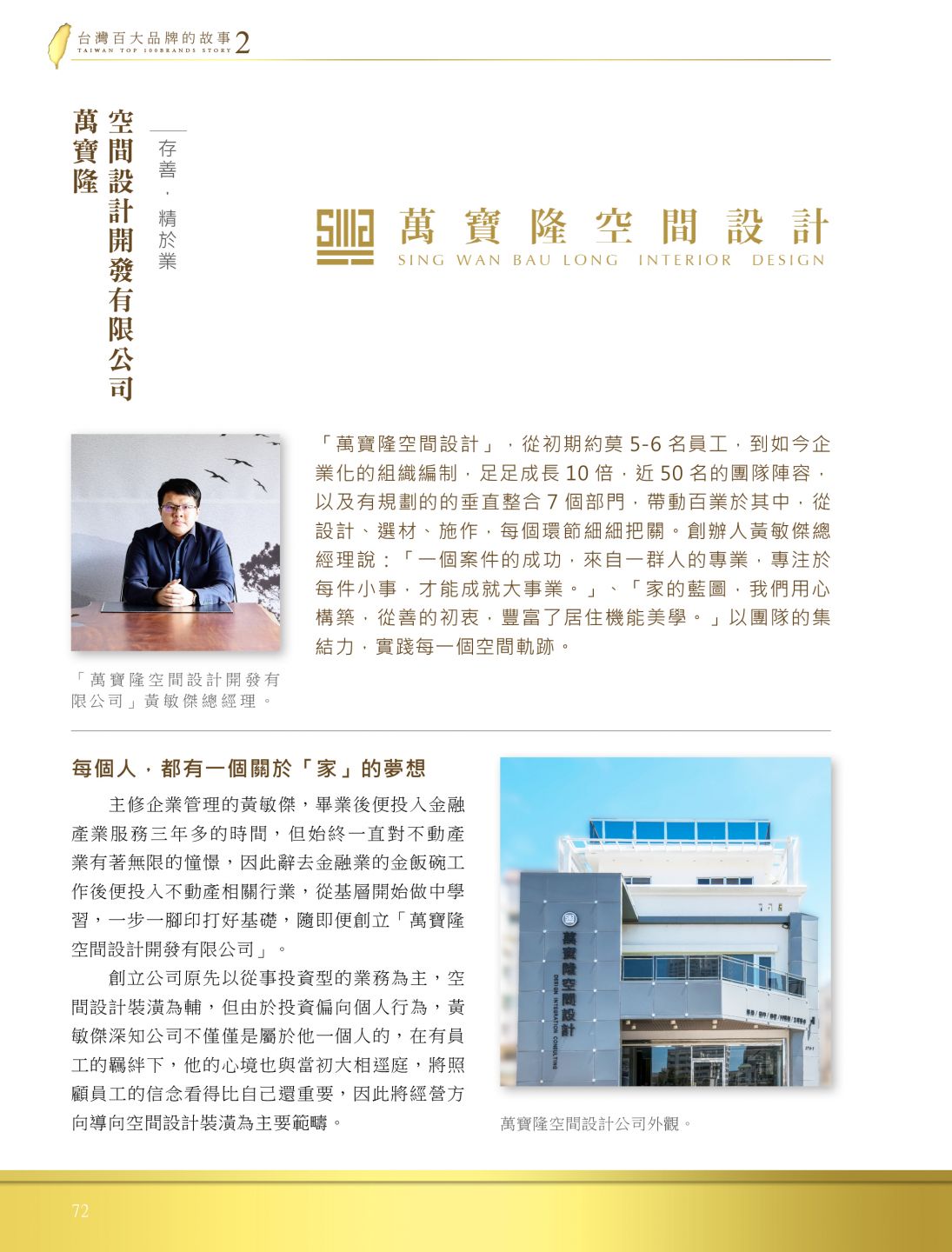 核心想法,默默的走,穩健的走,將萬寶隆空間設計打造台南最具規模