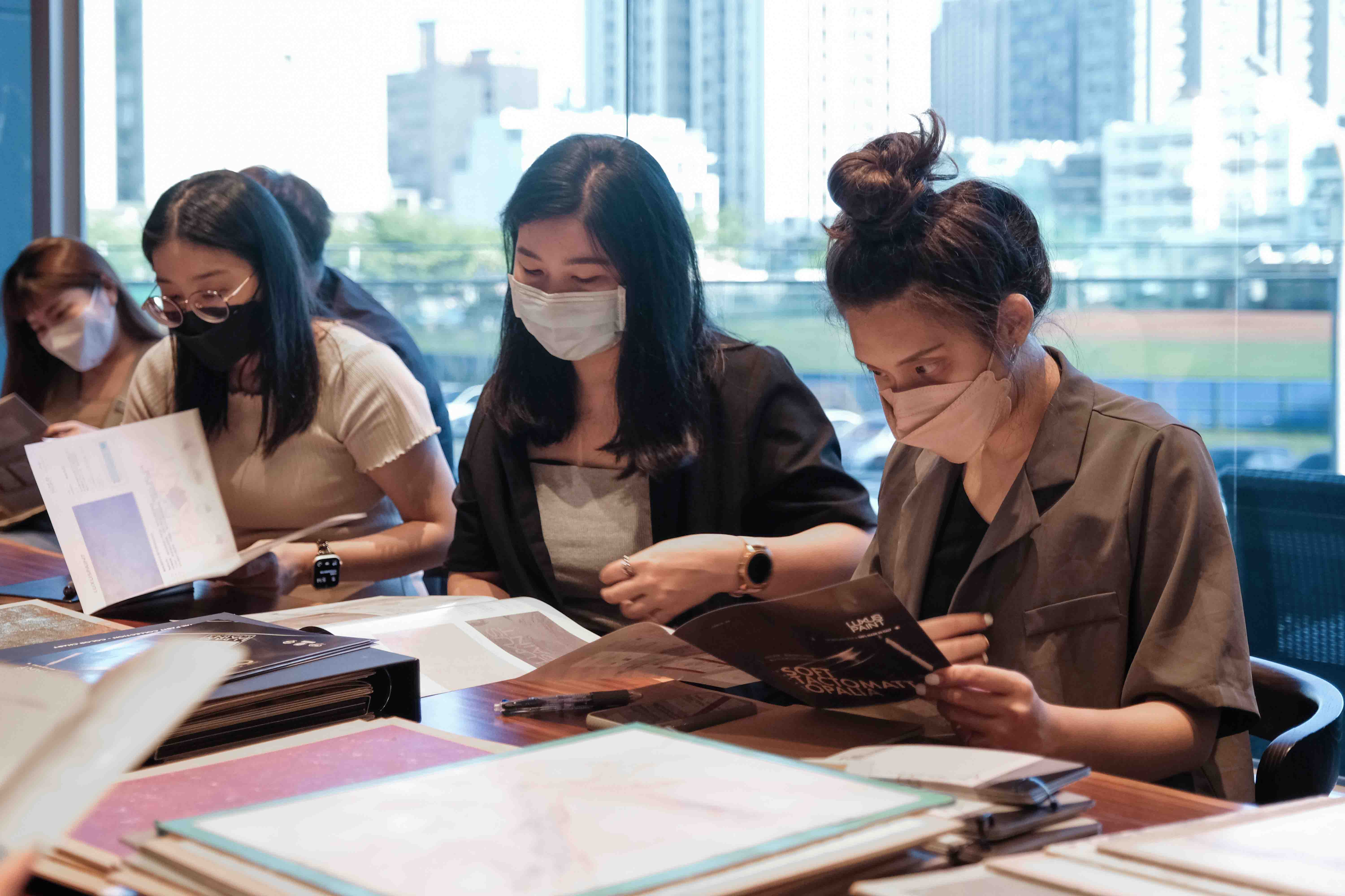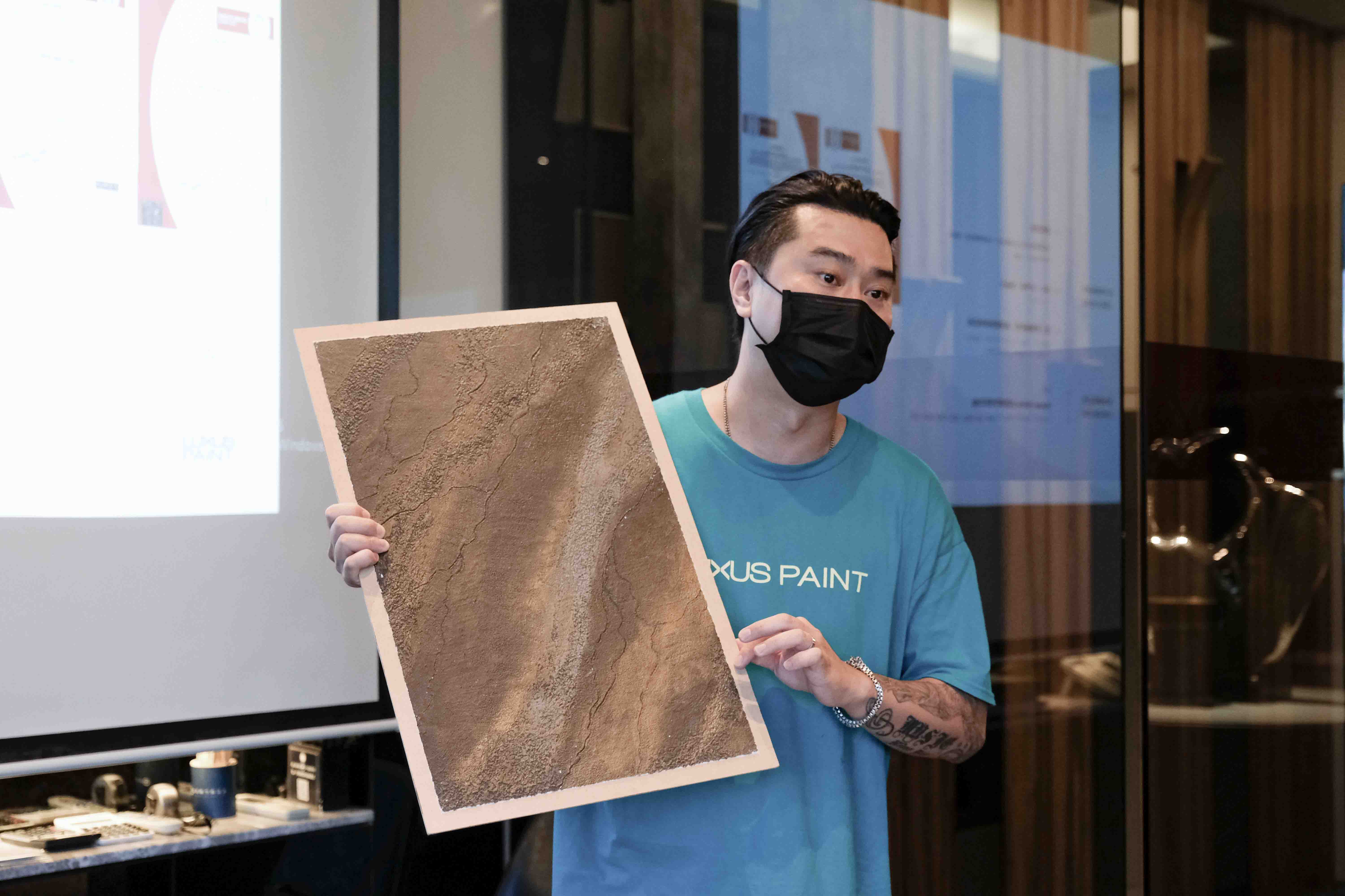 透過這場學習講座,同仁們得以親眼鑑賞、親手觸摸各式塗料的質感,對這種媒材的認識也更加透徹,不管是木紋、土質、仿鏽或者雕花,皆可透過油漆呈現,防水、抗污的表現亦讓人驚豔,未來可望以此知識,增長在室內美學中的多元應用。