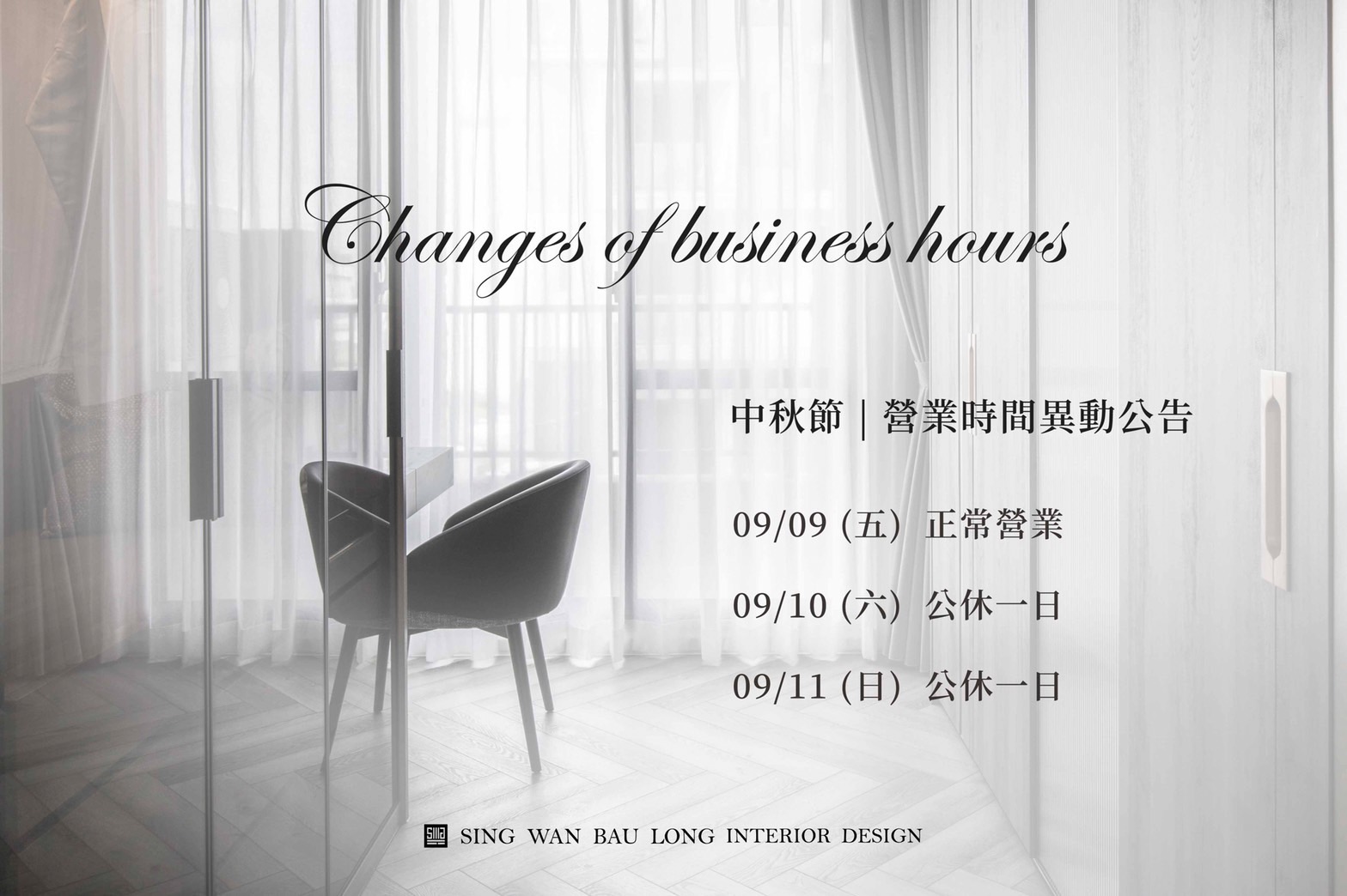 【中秋節│營業異動公告】