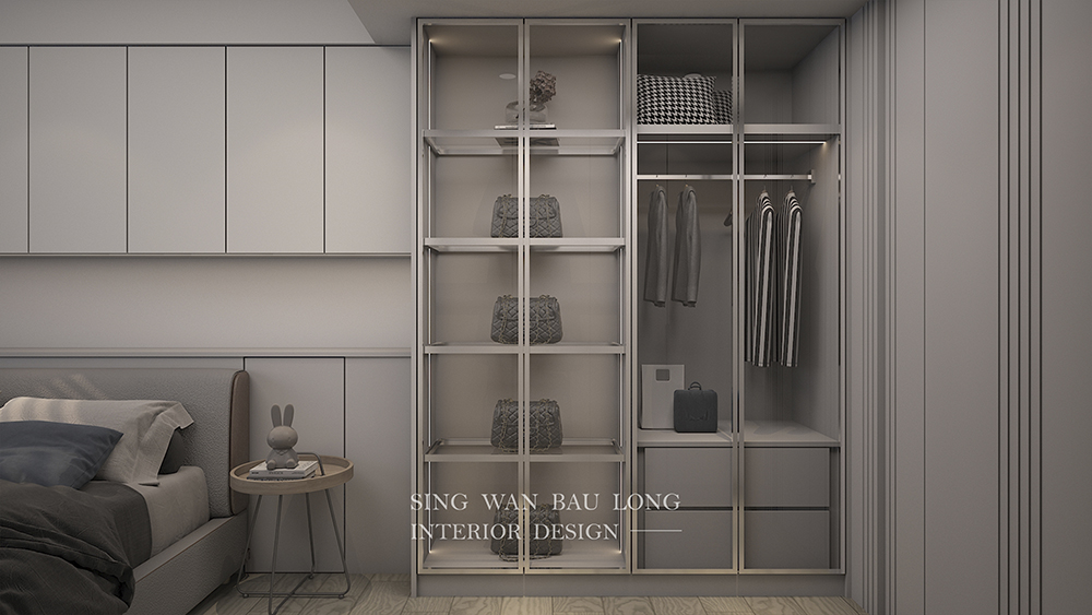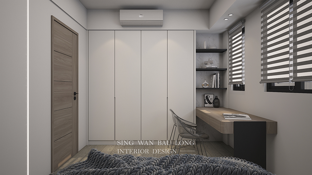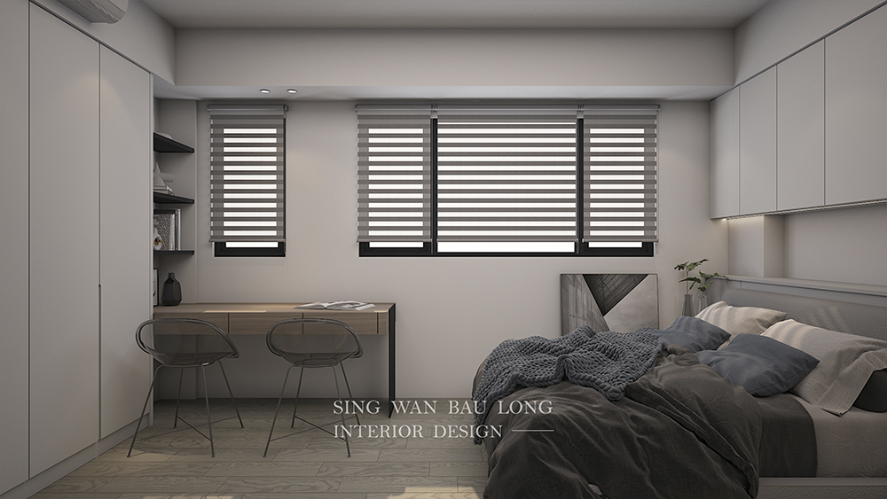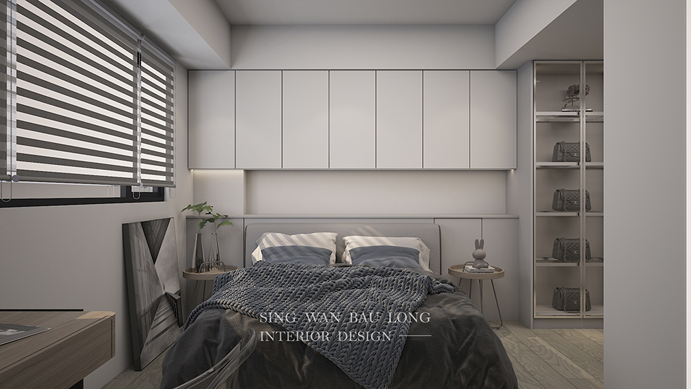 為臥室挹注舒適氛圍,便是為生活注入泉源活水,那些放鬆的時刻宛若氧氣,那麼自然又那麼純粹地,讓生活充滿生命力。本案採現代風,以經典無彩色-黑白灰為主調,鋪墊起弛放的旋律,再以溫暖的木紋,堆疊起暖烘烘的美學,最後佈設機能導向的櫃體,讓衣著、精品皆物有所歸,房間的淨樸感油然而生,而獨享此時此刻的美好,正是日常中最大的美意。