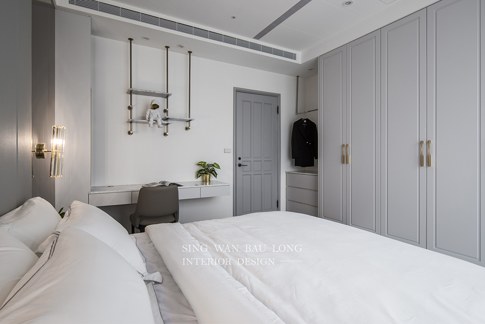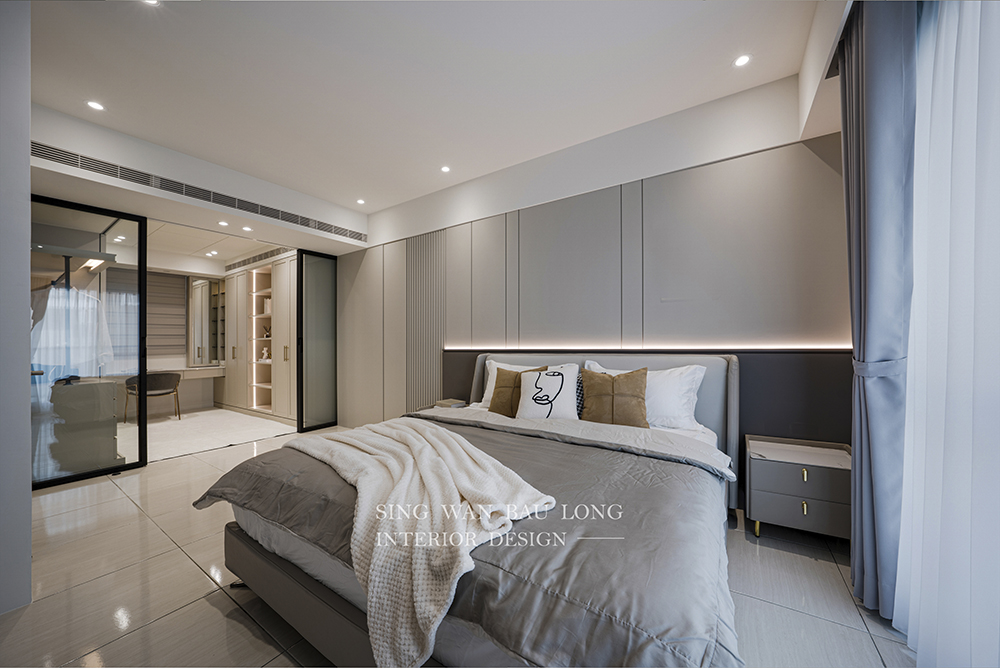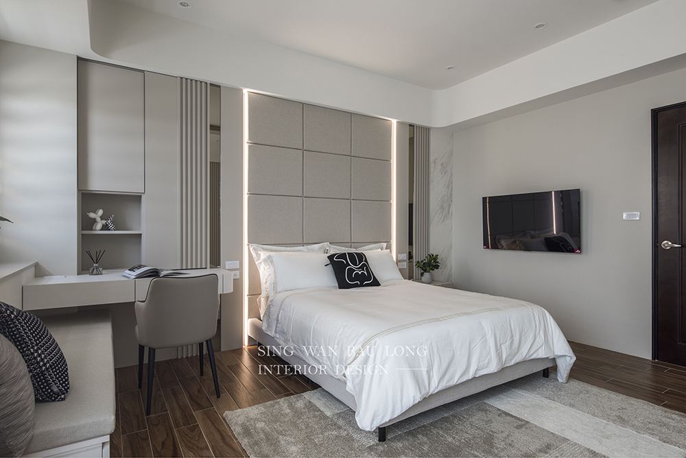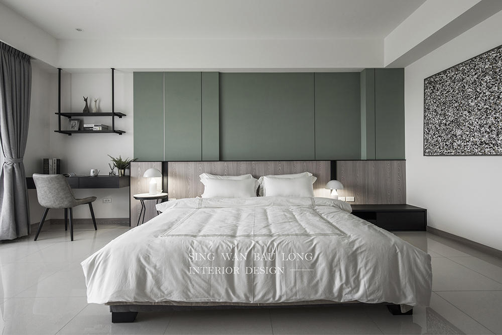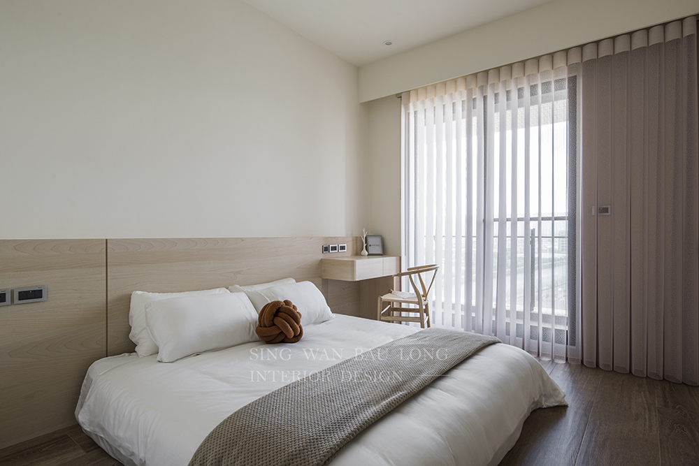 現代風:選擇中性色調,如白色、灰色和米色,可以營造出乾淨、整潔的空間感,營造現代感。搭配簡潔的線條和現代傢俱,營造出現代都市風格。流行的侘寂風(WabiSabi)強調極簡自然,使用水泥灰、木調、純白等元素,展現寧靜臥室畫面,消暑並提供舒適感。