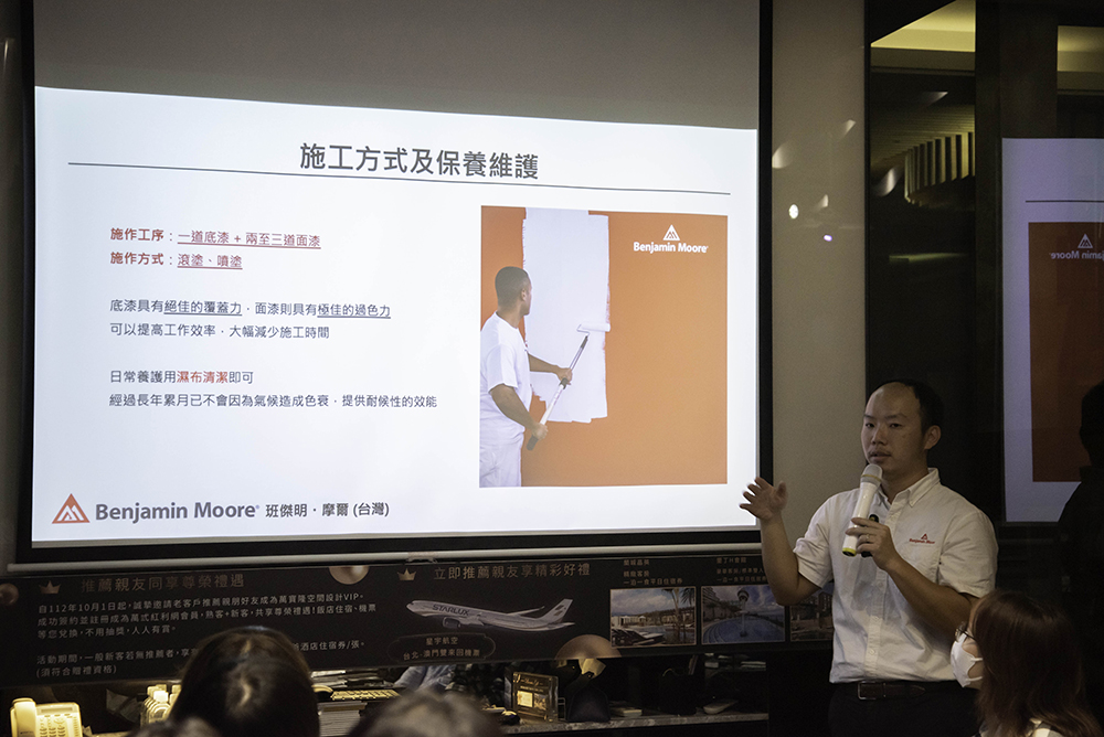 本月邀請國際塗料品牌 班傑明摩爾-美國環保乳膠漆 授課,分享最新塗料技術、色彩趨勢,以及如何運用不同的色彩搭配打造出令人印象深刻的設計。更精彩的是,設計師們當天參與平塗體驗,感受刷漆的樂趣,關於塗料與設計上的應用問題,也能得到即時解答!