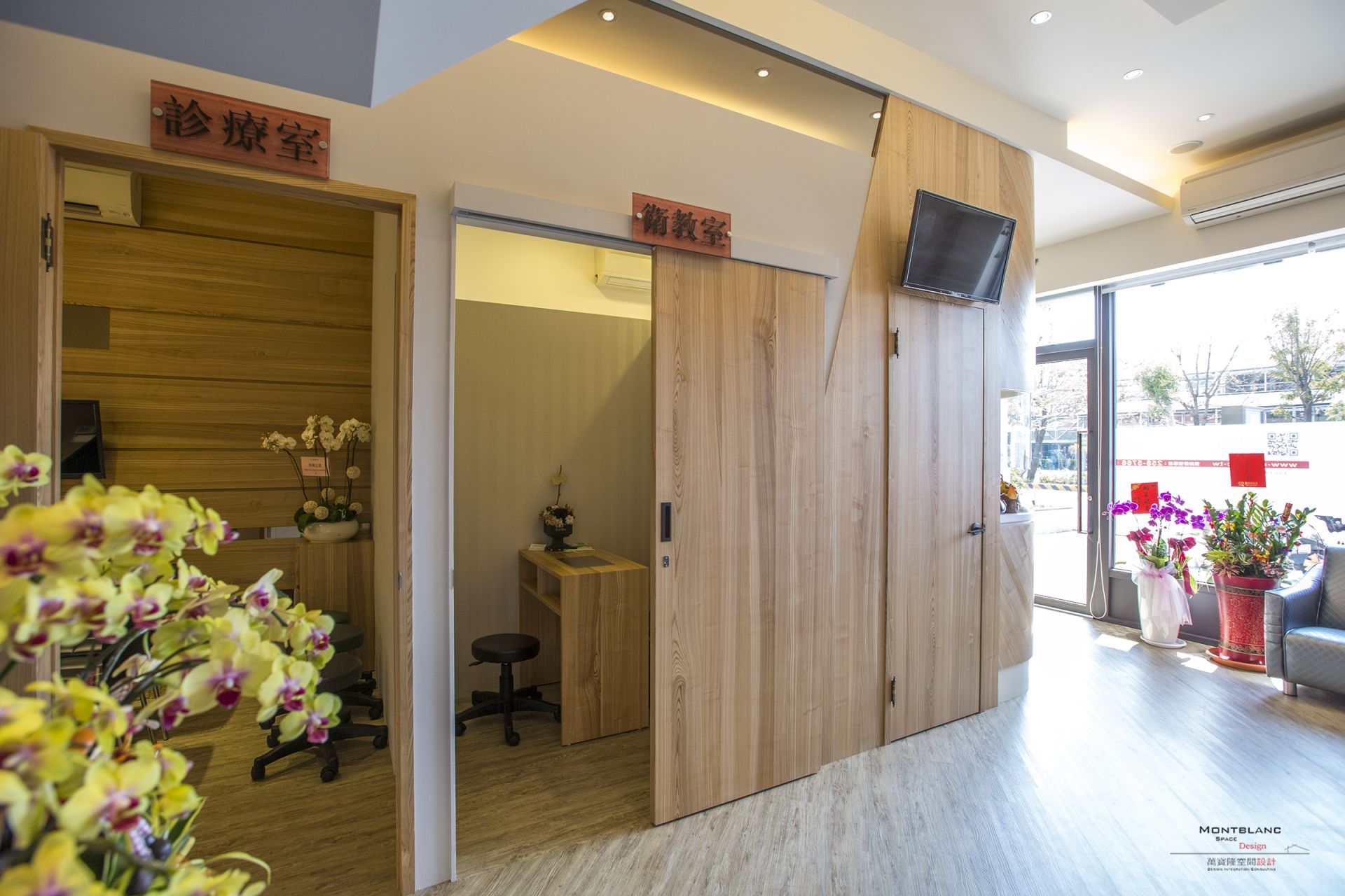 診療室、衛教室、櫃檯、等候區、藥房