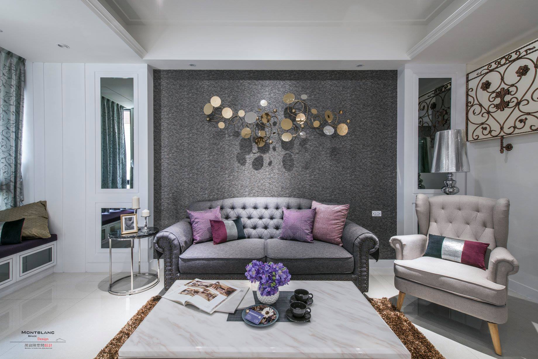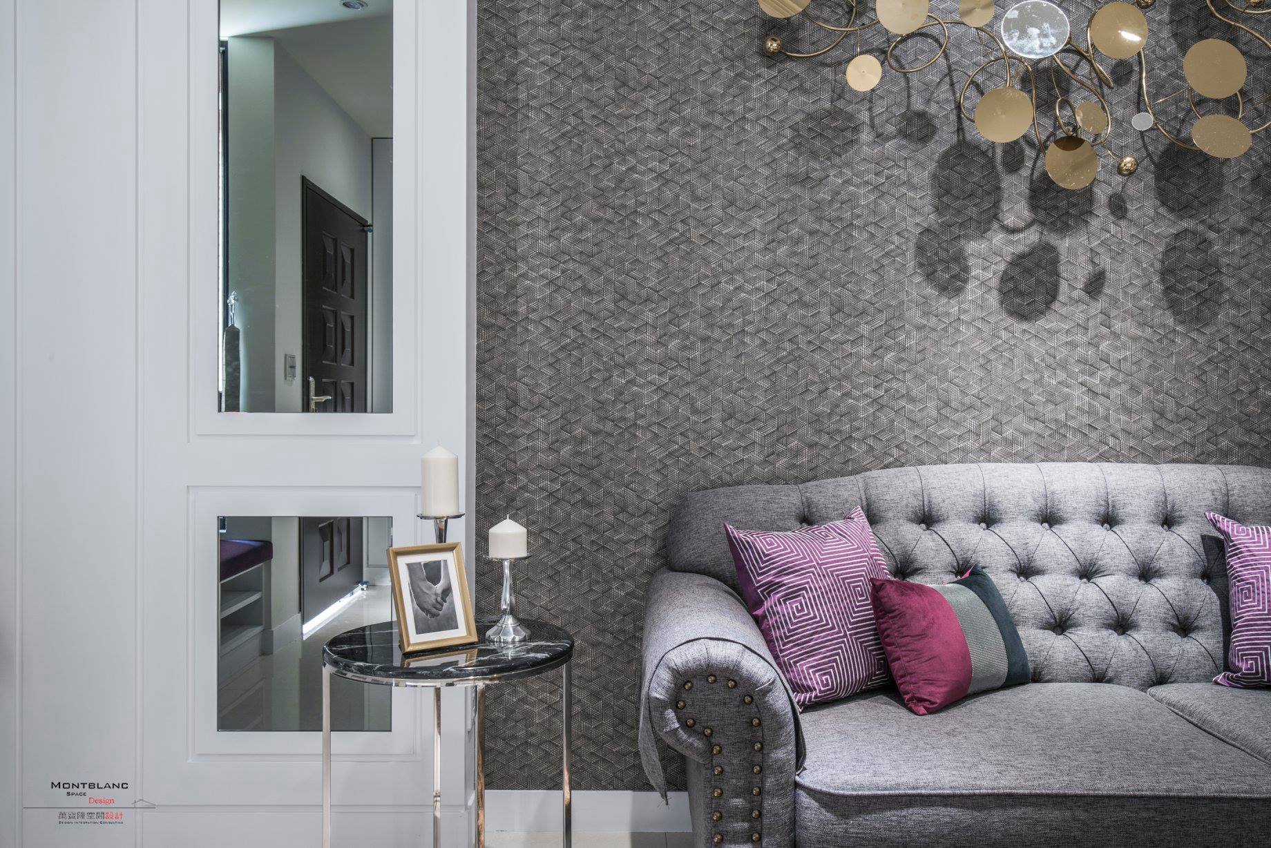 灰鏡、壁紙、繃布、大理石、線板