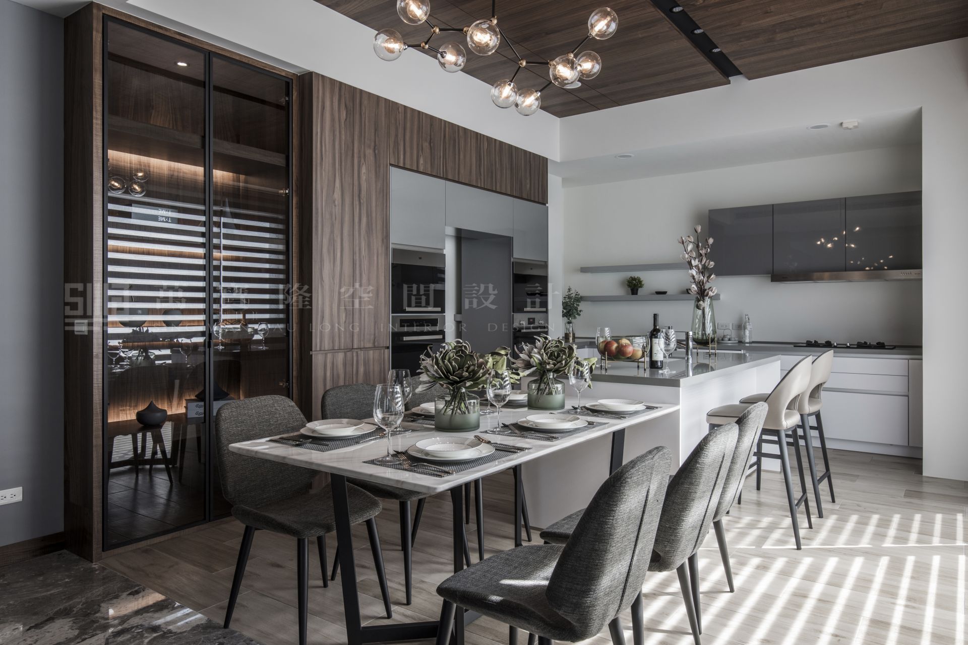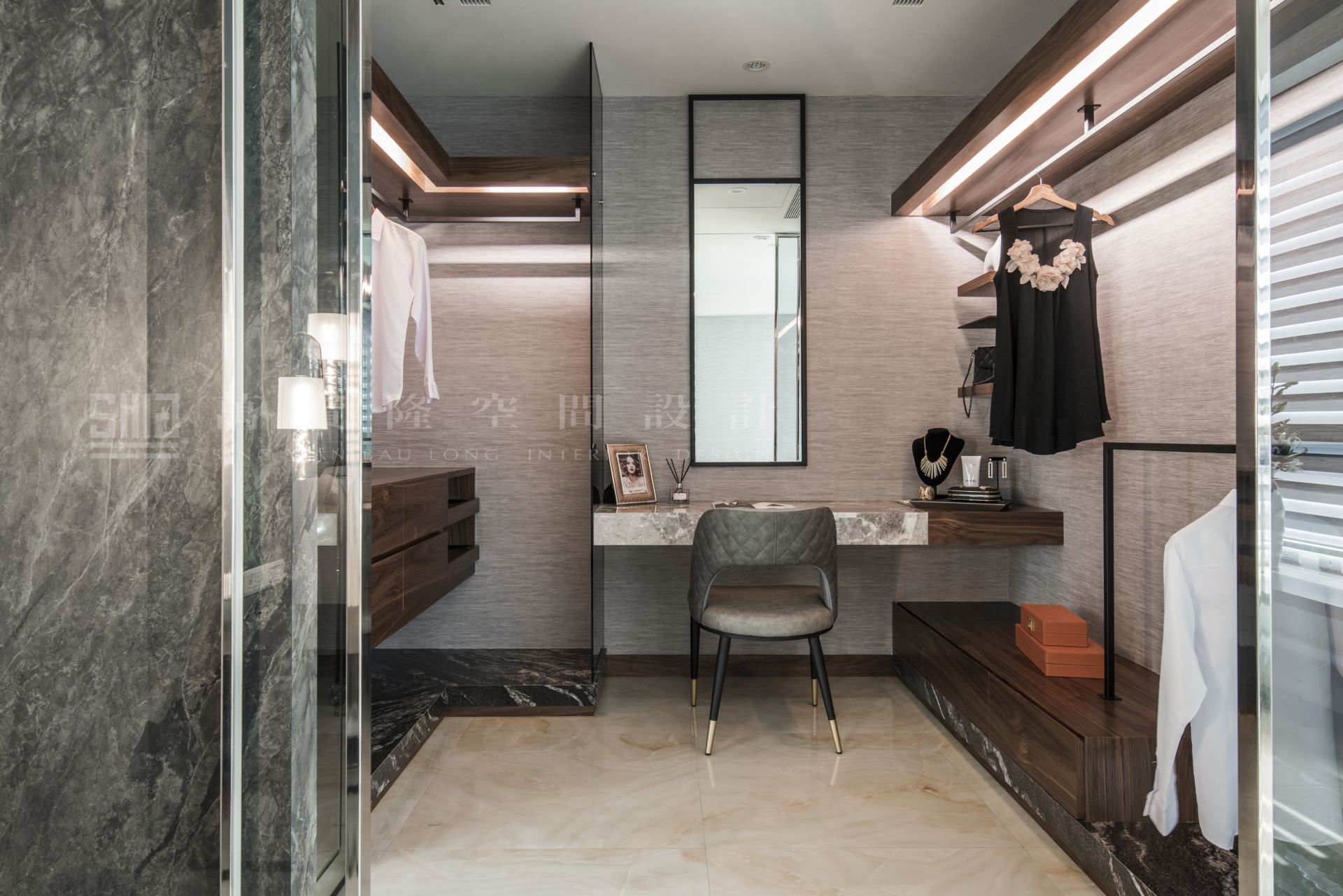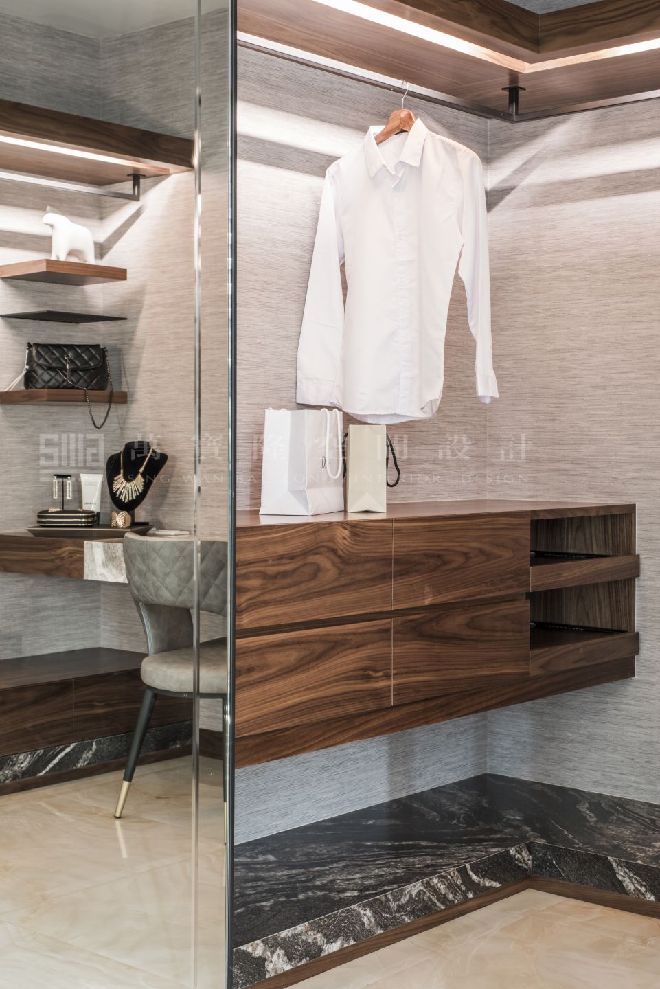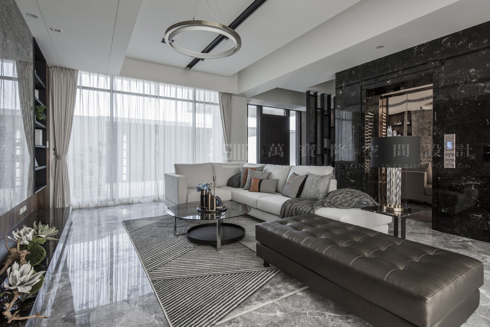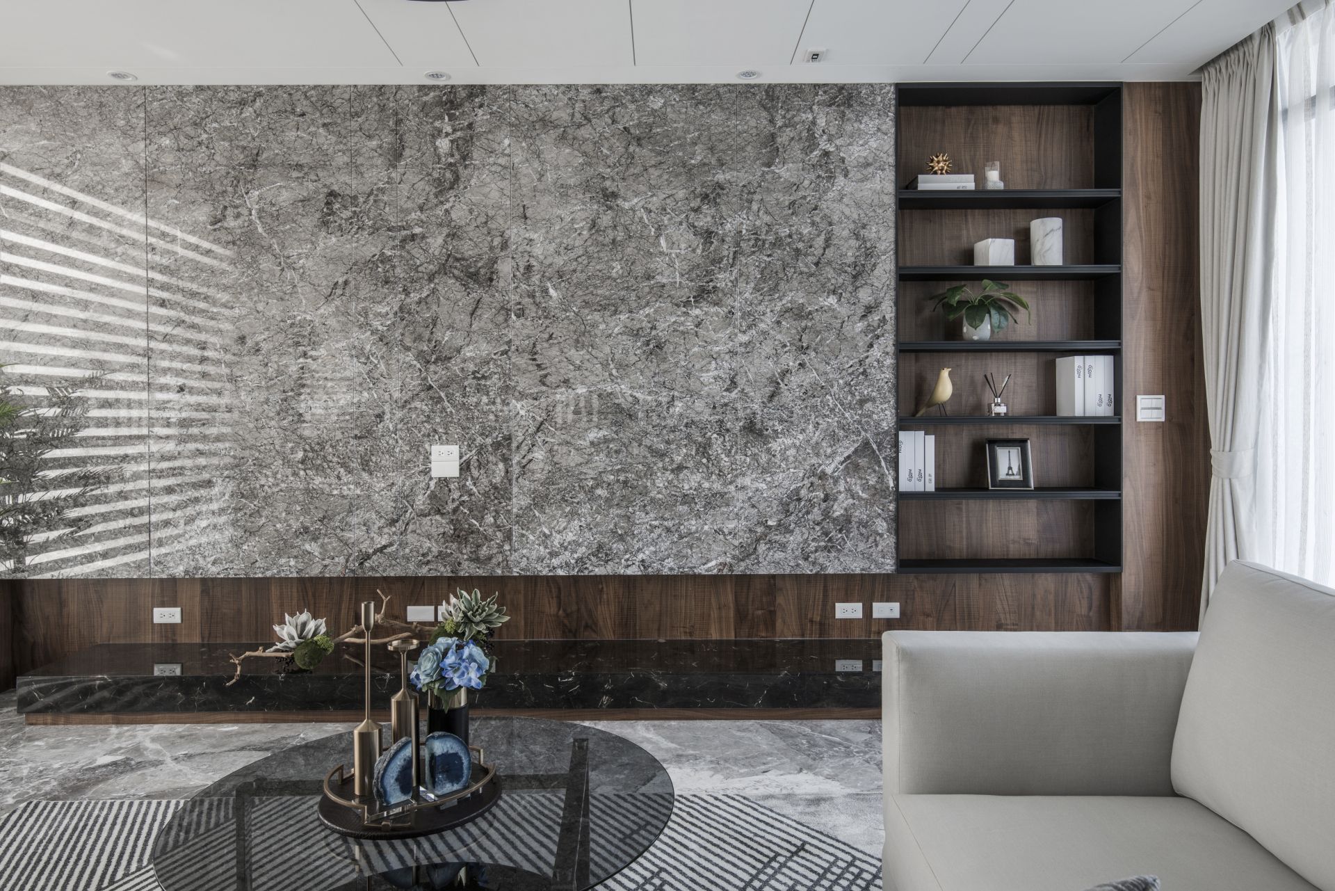 大理石、鐵件、皮革、灰玻、天然木皮