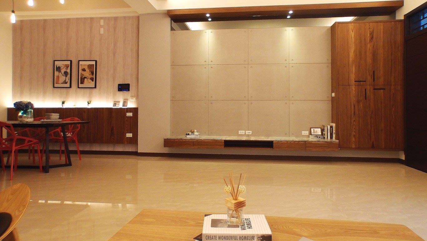玻璃、木皮、水泥板、灰鏡、壁紙