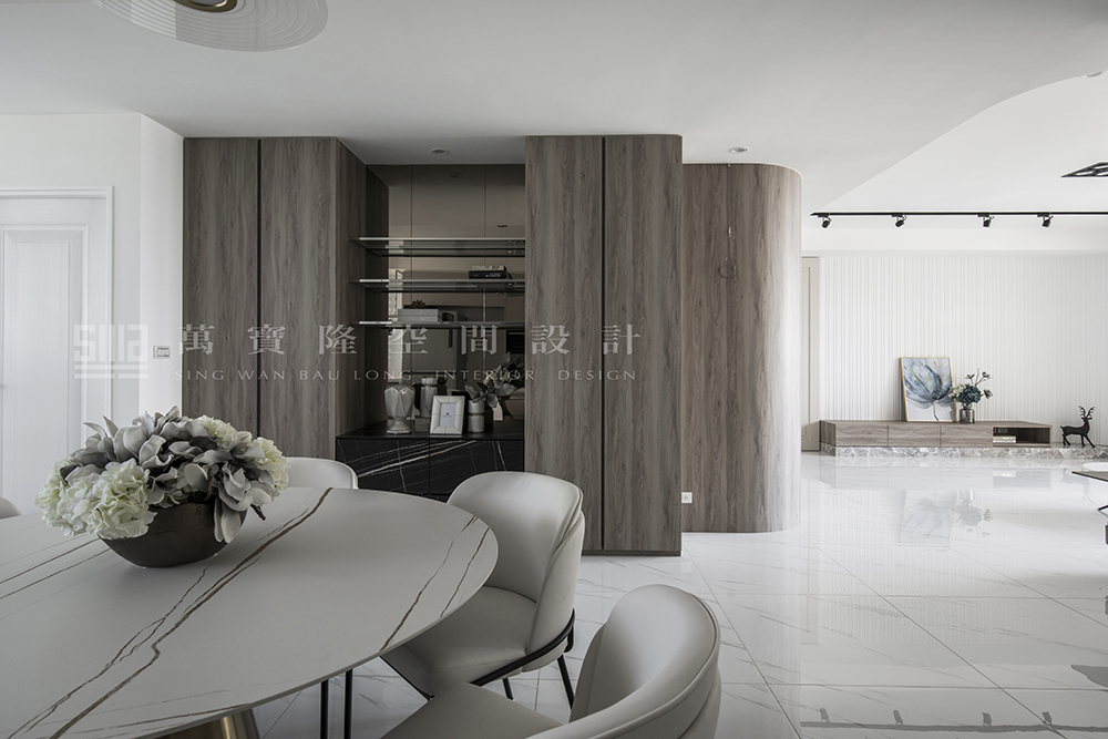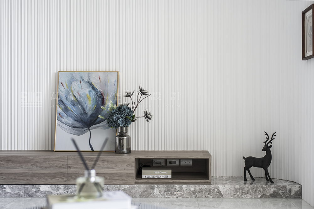 藝術線板、大理石、木皮、鐵件、黑玻璃
