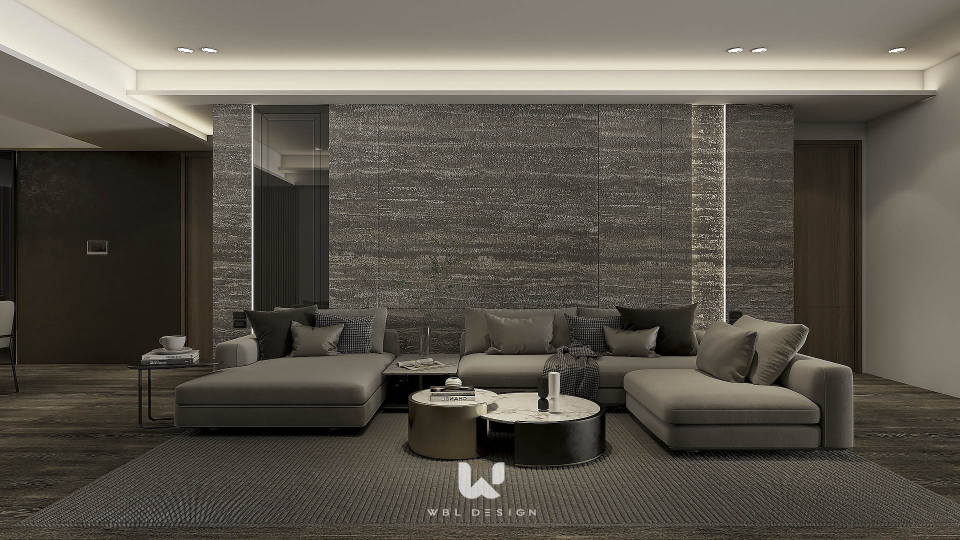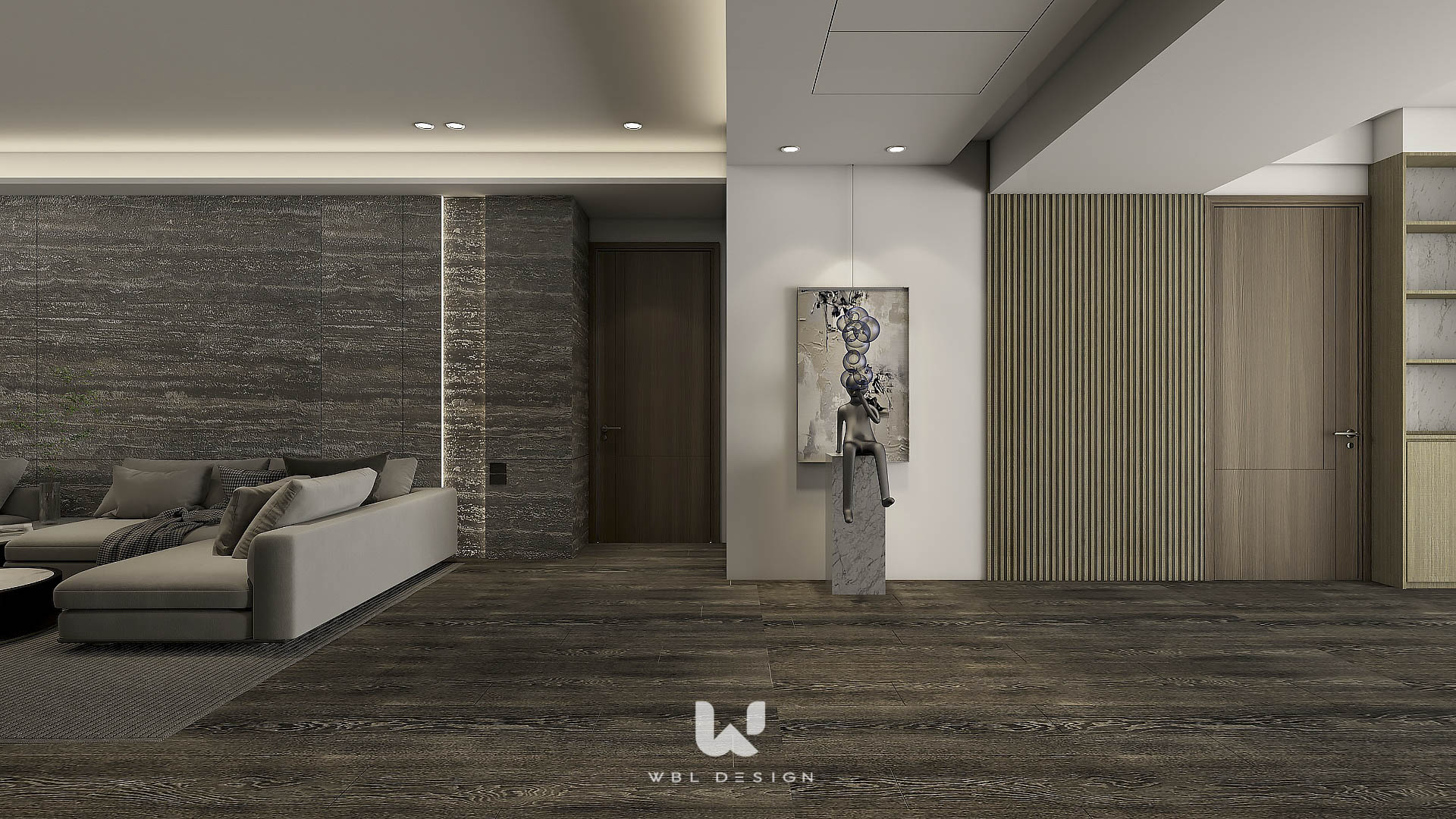 雕塑水泥、洞石石材、烤漆、塗料、繃布