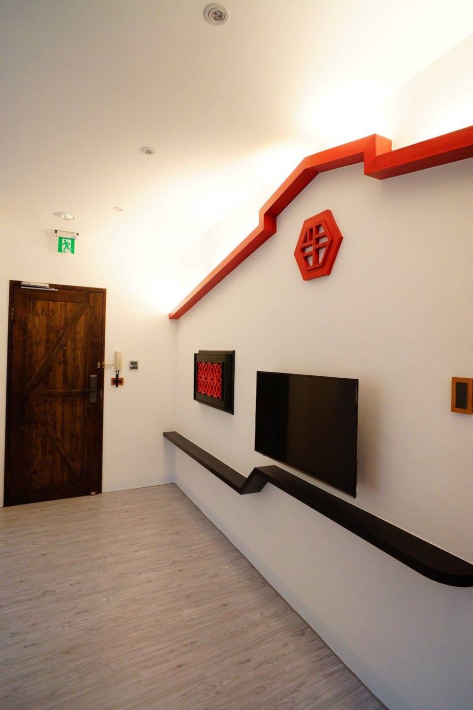 紅色文化石、玻璃、木皮、壁紙、水泥板、皮革